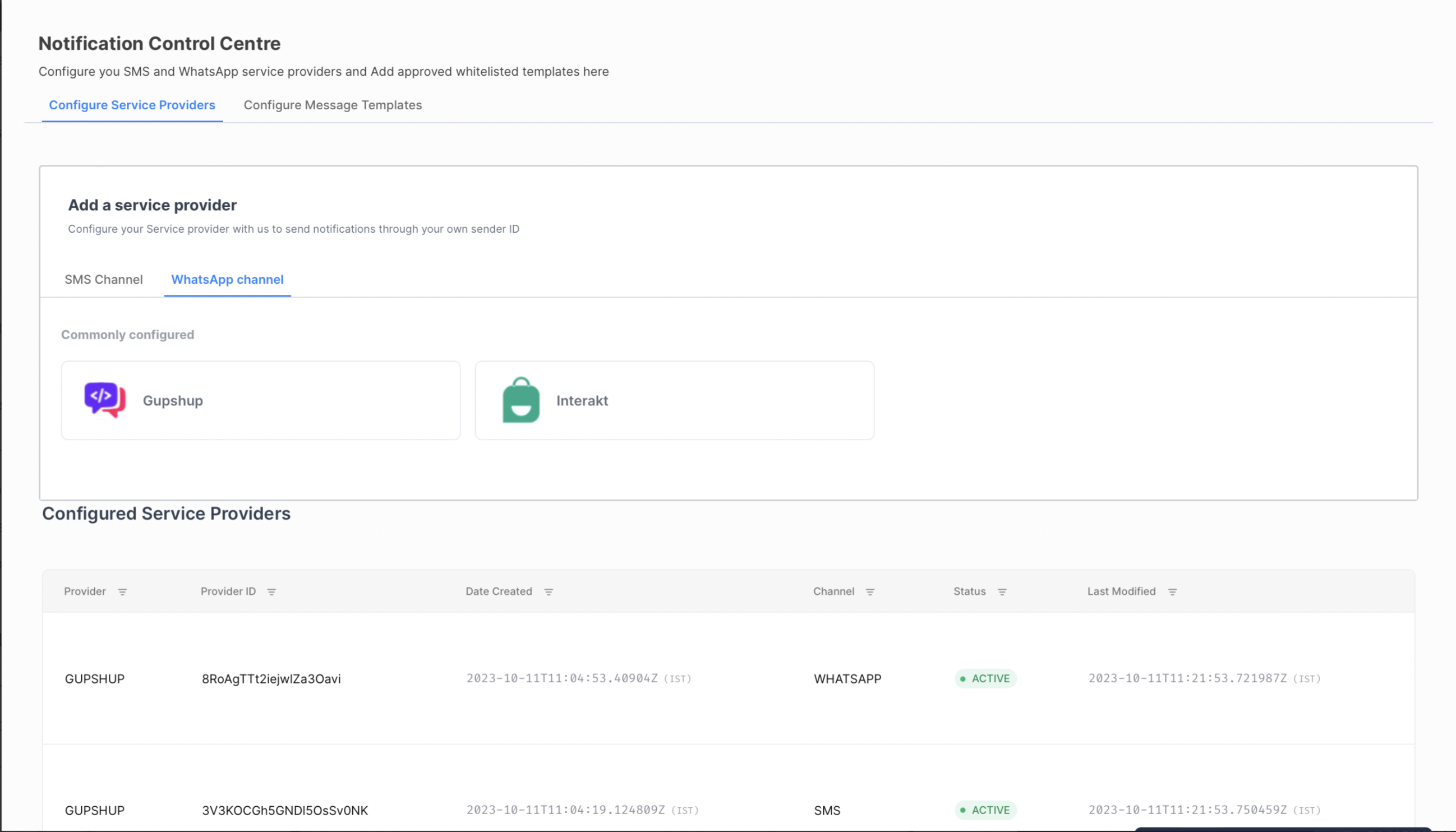 Once the BSP is configured, you need to configure SMS and WhatsApp templates.
