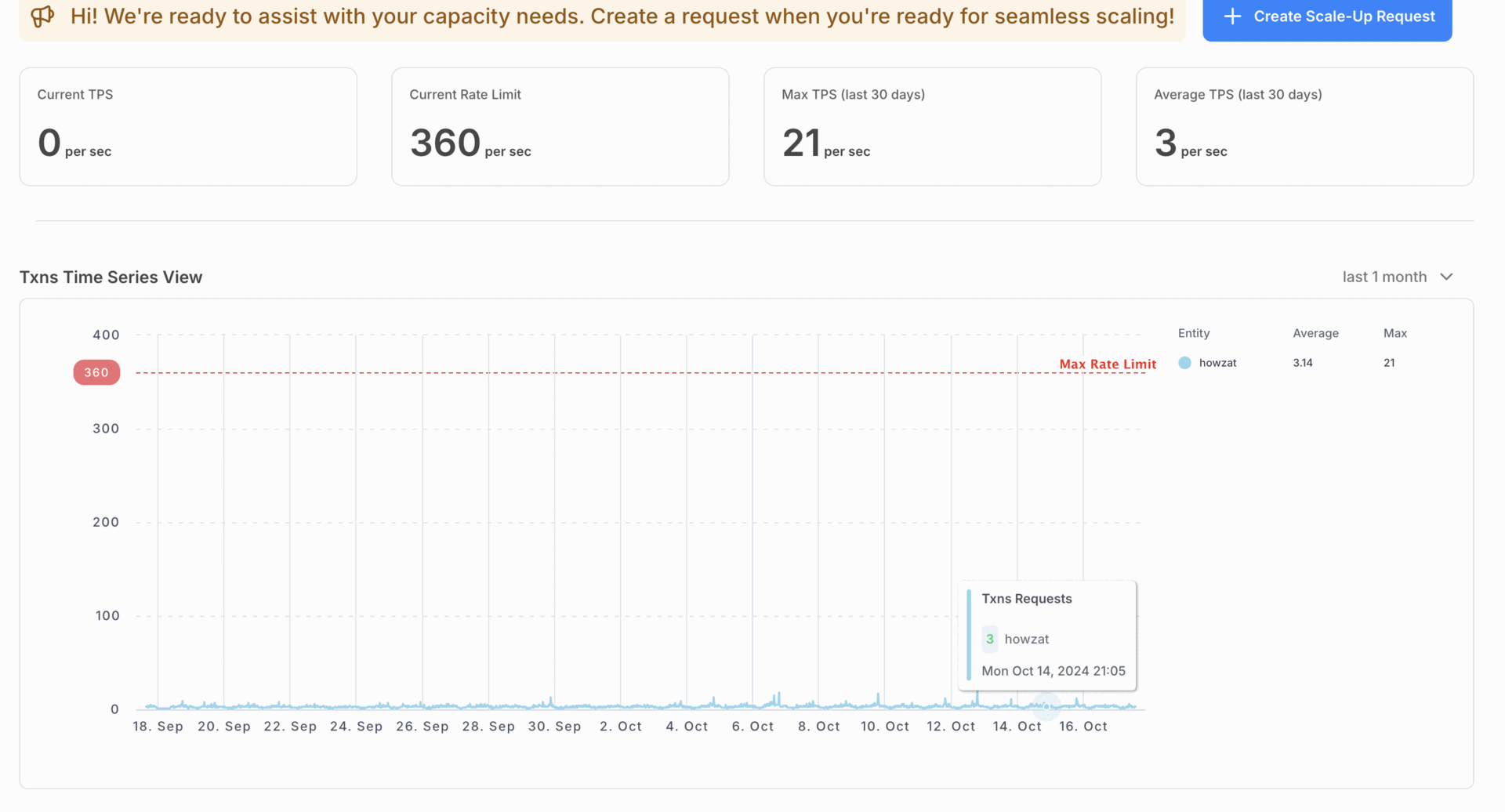 Request Additional Capacity to Handle Transaction Volume: Seamlessly raise requests for increased TPS capacity when you anticipate higher transaction volumes.