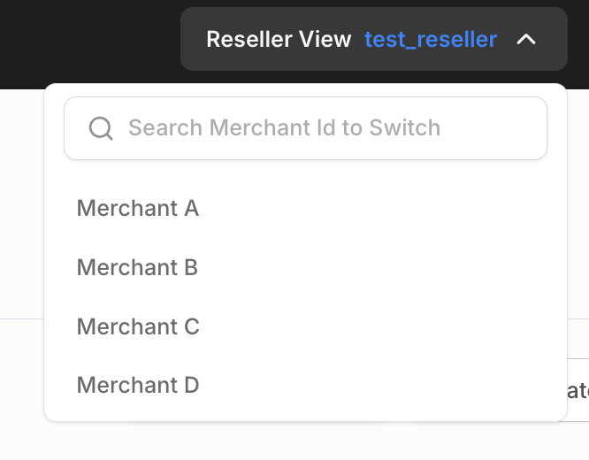 | Resellers can switch to a specific merchant’s dashboard and see what they are seeing.