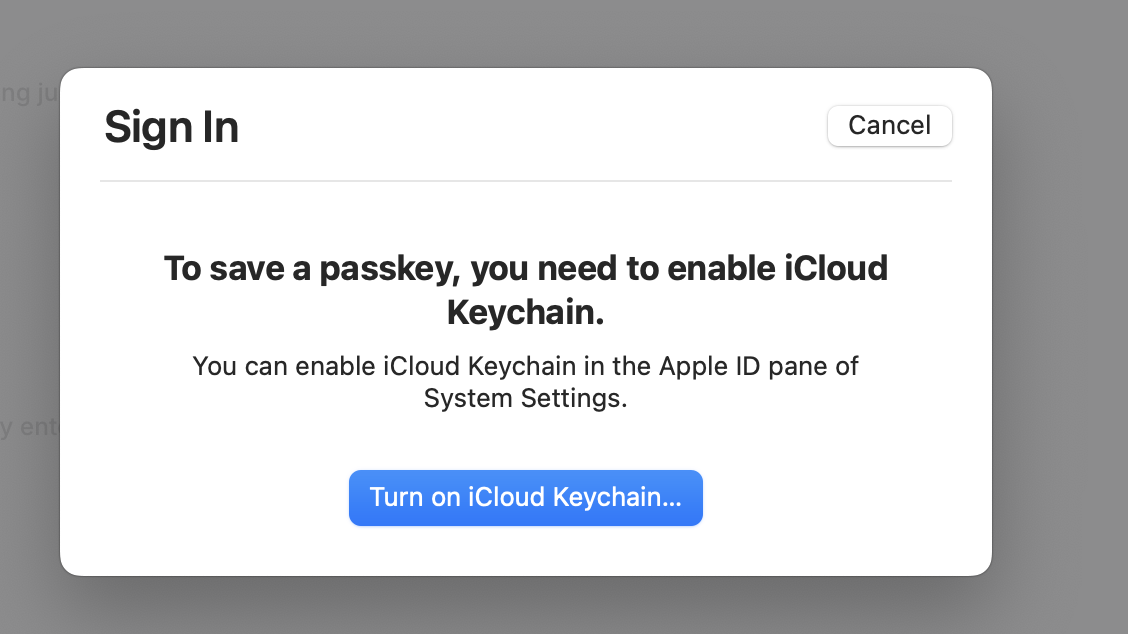 4.1.2 Error: To save a passkey you need to enable iCloud Keychain