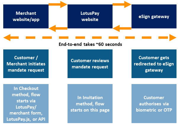 The eSign eMandate redirect flow can use the Checkout method (a) or the Invitation method (b), depending on your use case.