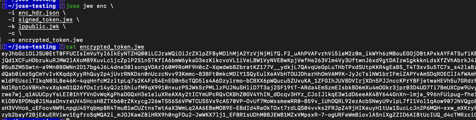 This process yields an Encrypted JSON Web Token (JWT).