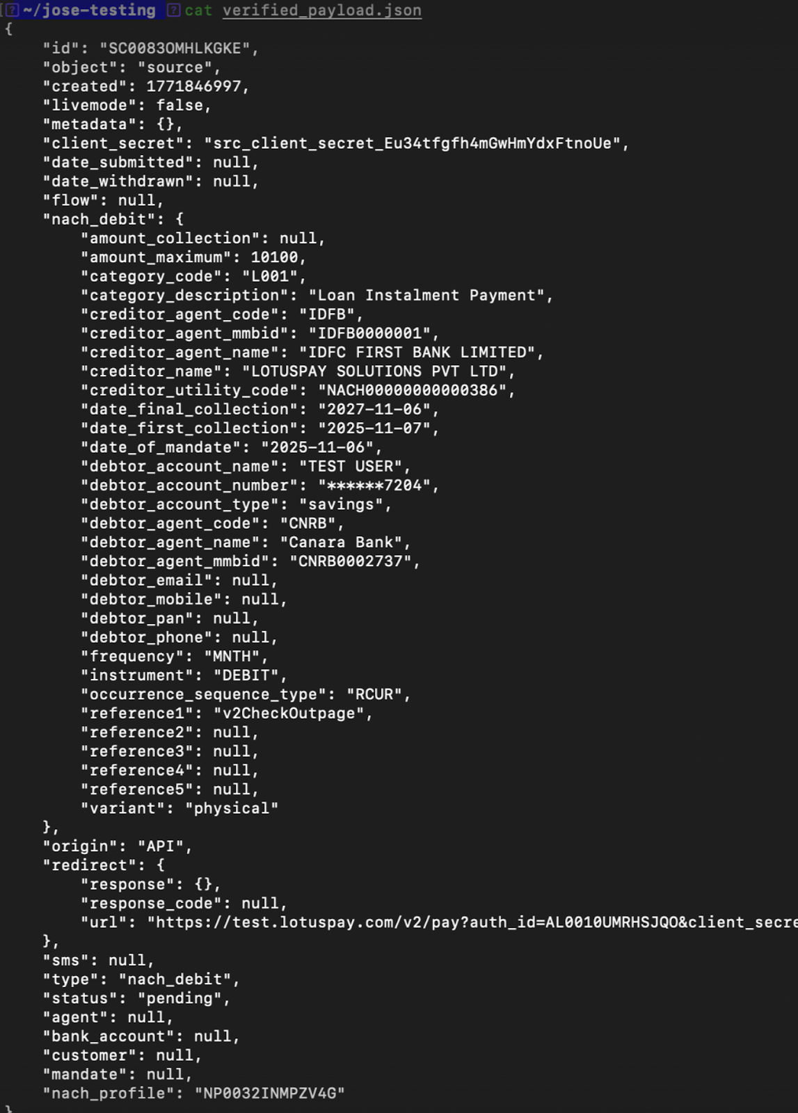 Example (Encrypted): https://api.lotuspay.com/enc/v1/sources