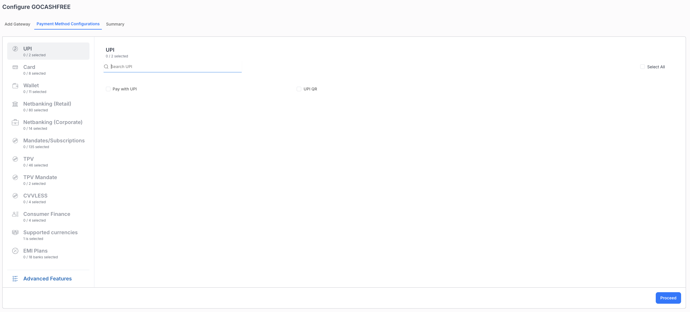 Enable the various payment methods like UPI, Card, Wallet etc that are also enabled at PG end.