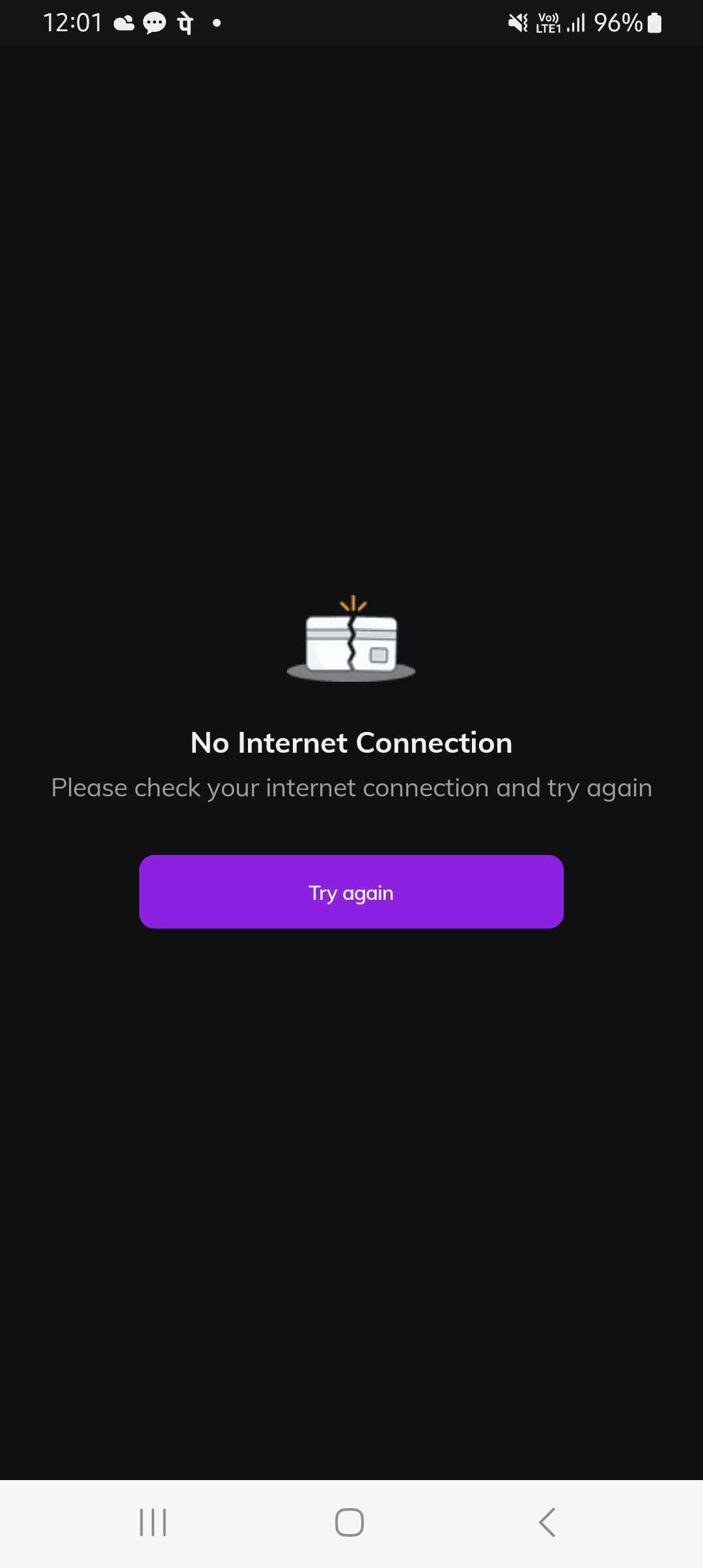 Connectivity Issues: If there is no internet or connectivity problem, users will see a retry screen with a prompt message explaining the issue.